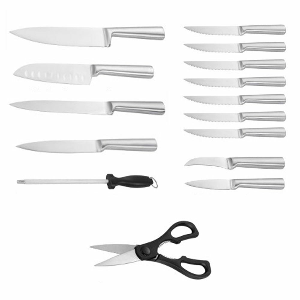 16 részes késkészletünk segítségedre lesz a konyhai előkészületek során, és fa tartójával elegáns és praktikus tárolási lehetőséget is biztosít, így mindig kéznél lesznek mikor szükséged lesz rájuk. A készletben található olló és élező is, mellyel mindig élesen tarthatod az eszközöket.