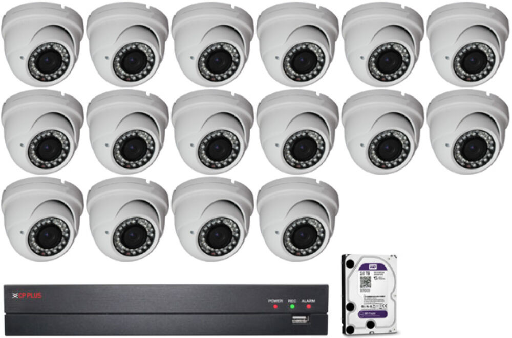 16 db HDCVI dome kamera (36 IR LED), 16 csatornás képrögzítő, 2000 GB HDD.