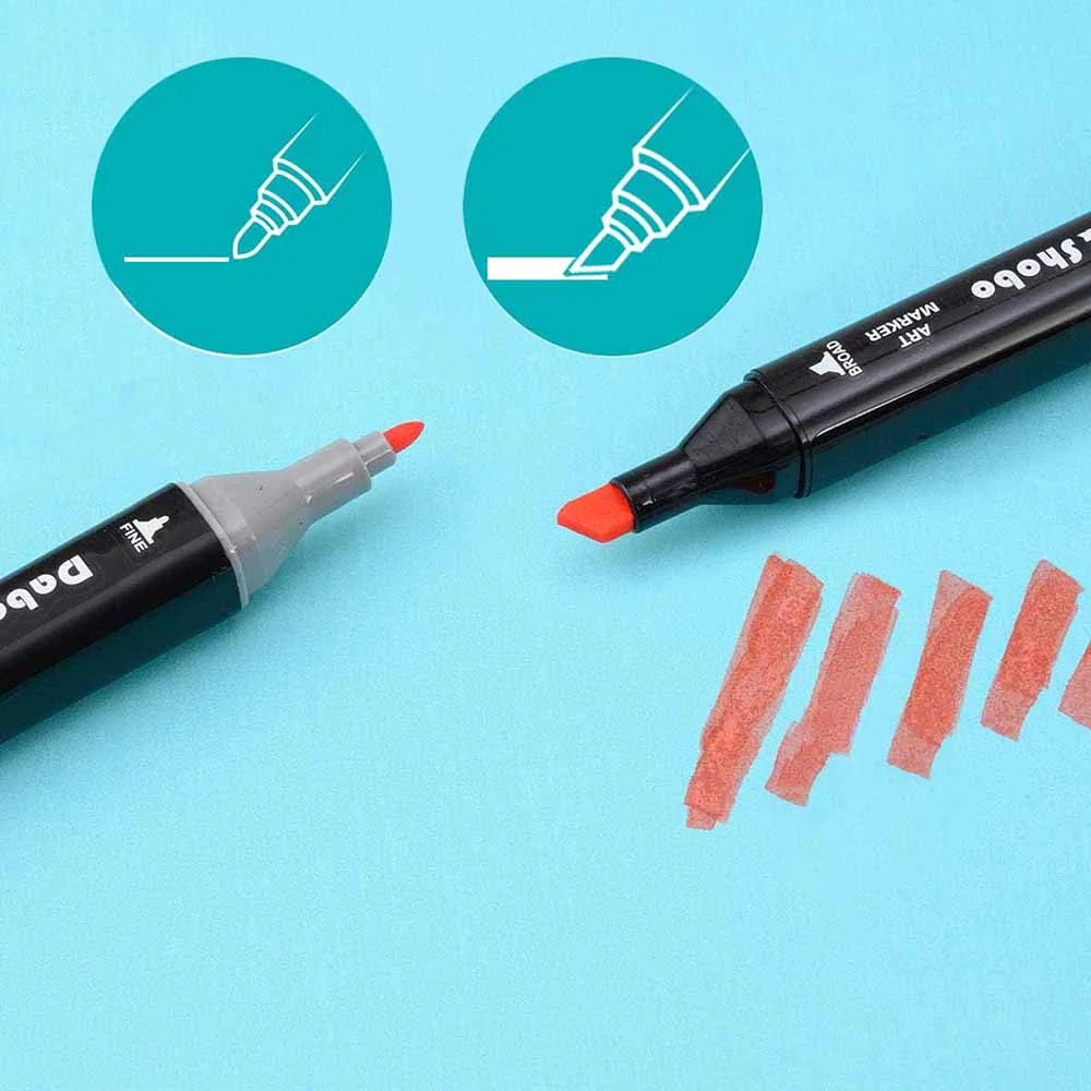 A markerek gyorsan száradó, alkoholbázisú tintával vannak feltöltve, amely sima, csíkmentes fedést biztosít. A kétféle hegy – egy finomabb a részletekhez és egy szélesebb a nagyobb területekhez – lehetővé teszi a precíz és hatékony rajzolást.