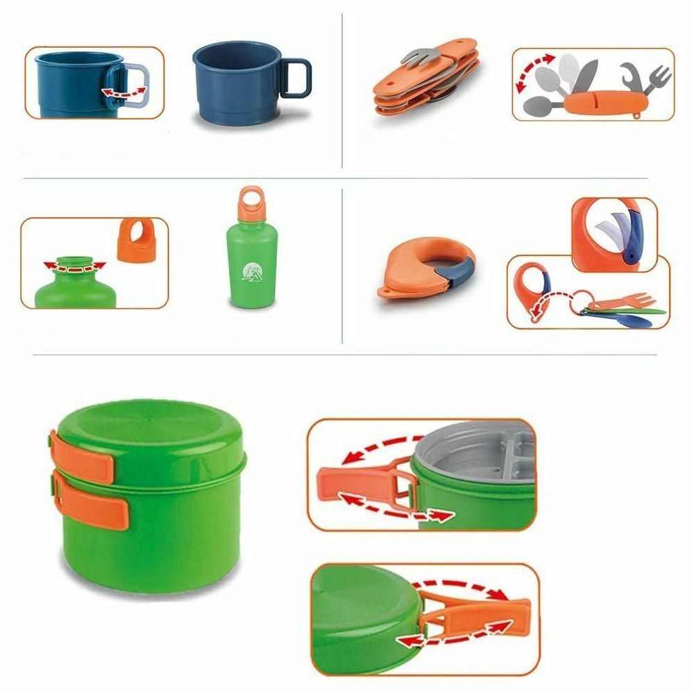 Játék kempingszett a legkisebb túrázóknak! Talán nincs olyan gyerek, aki ne élvezné a természetben töltött időt, akár túrázásról, akár csak a kertben felállított sátorozásról legyen szó. A 29 részes játék kemping szettel most garantáltan mindene meglesz a gyerekeknek ahhoz, hogy felfedezzék a kinti világot. Játék gázégővel, edényekkel, késekkel és további játék kiegészítőkkel élhetik bele magukat a kempingezés izgalmaiba.