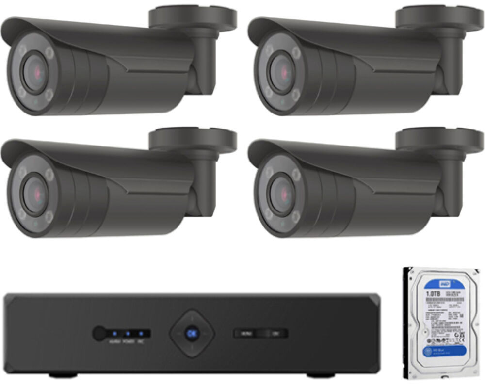 4 db vaifokális AHD kamera (4 infra tömb LED), 4 csatornás képrögzítő, 1000 GB HDD.