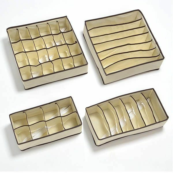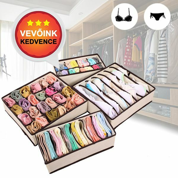 Vess véget az állandó keresgélésnek az alsónemű kupacok között! 4 részes tárolódoboz szettünket akár fiókba, akár szekrénybe is teheted, hogy mindig átlátható legyen a fehérnemű repertoár. A különböző méretű tartókban és rekeszekben zoknikat, melltartókat, alsónadrágokat is tárolhatsz.