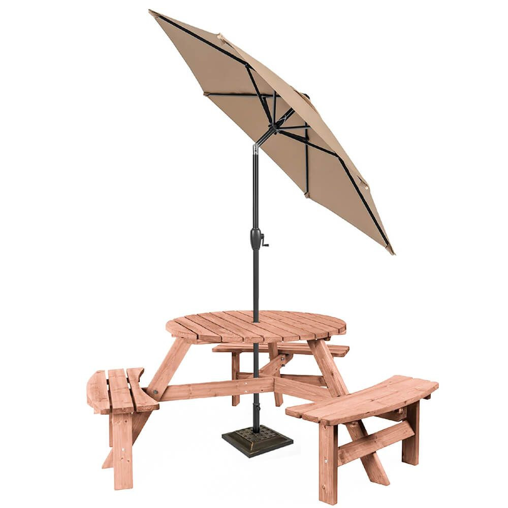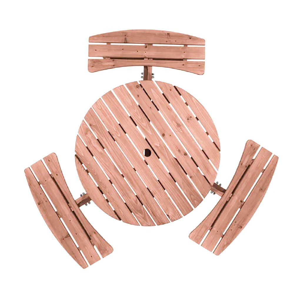 A kör alakú forma lehetővé teszi, hogy mindenki egyenlő távolságra üljön egymástól, így könnyítve meg a beszélgetést és az étkezést. Az asztal közepén található napernyő nyílás pedig lehetőséget ad arra, hogy napernyőt helyezz az asztal fölé, biztosítva az árnyékot a napsütéses napokon.