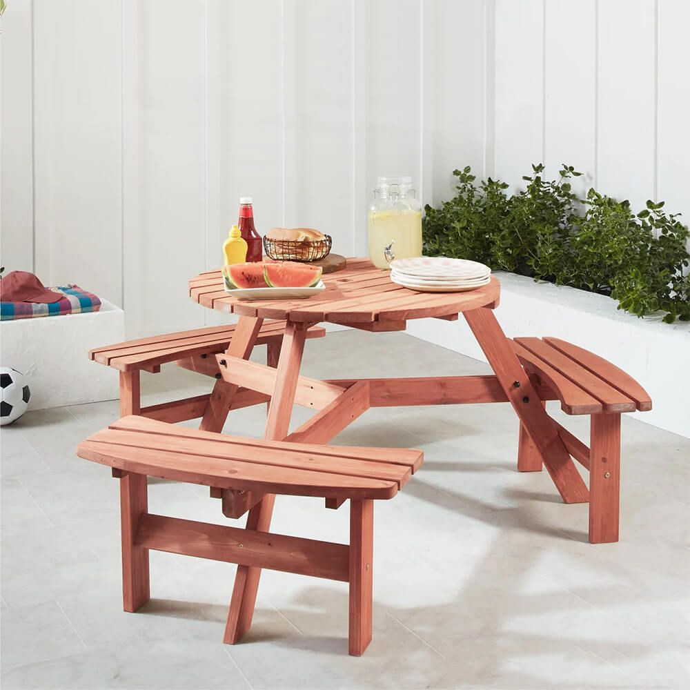 A praktikus és esztétikus kialakítás mellett a 6 személyes piknik asztal könnyen összeszerelhető és szétszerelhető, így egyszerűen tárolható és szállítható. Mivel az asztal nem áll ellen az esőnek, így javasoljuk, hogy száraz helyen tárold amikor nem használod hogy hosszú távon is megőrizze a fa szépségét és tartósságát.