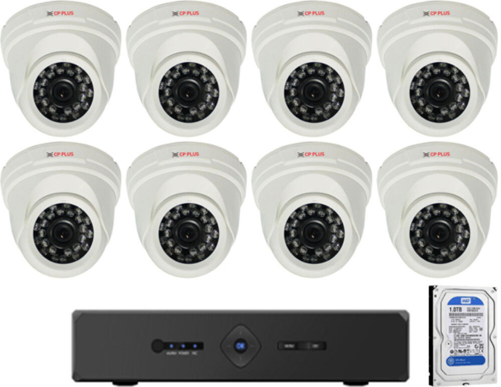 8 db AHD dome kamera (24 infra LED), 8 csatornás képrögzítő, 1000 GB HDD.