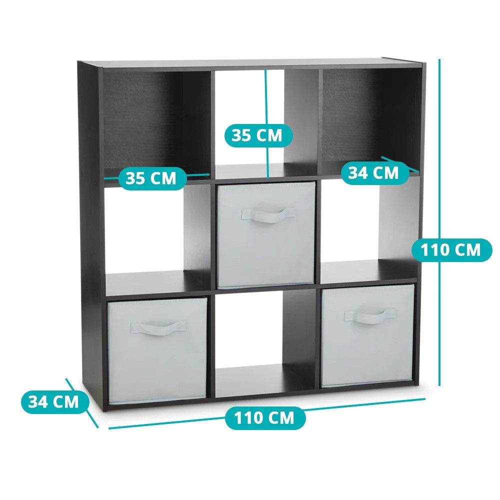 Ez a 9 rekesszel és három kosárral rendelkező tárolópolc praktikus megoldást kínál különféle tárgyak, mint könyvek, játékok és ruhák rendszerezésére. Tartós, könnyen tisztítható és modern vagy klasszikus enteriőrökhöz egyaránt illik. Egyszerűen összeszerelhető és több helyiségben is jól használható.