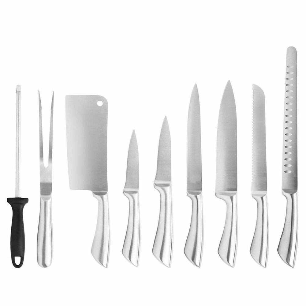 9 részes konyhai késkészletünkben minden általános kést megtalálsz amire sütés-főzés közben szükséged lehet. Anyaga időtálló, erős. A markolat kialakítása kényelmes fogást biztosít a késeknek, súlyelosztásuk optimális.