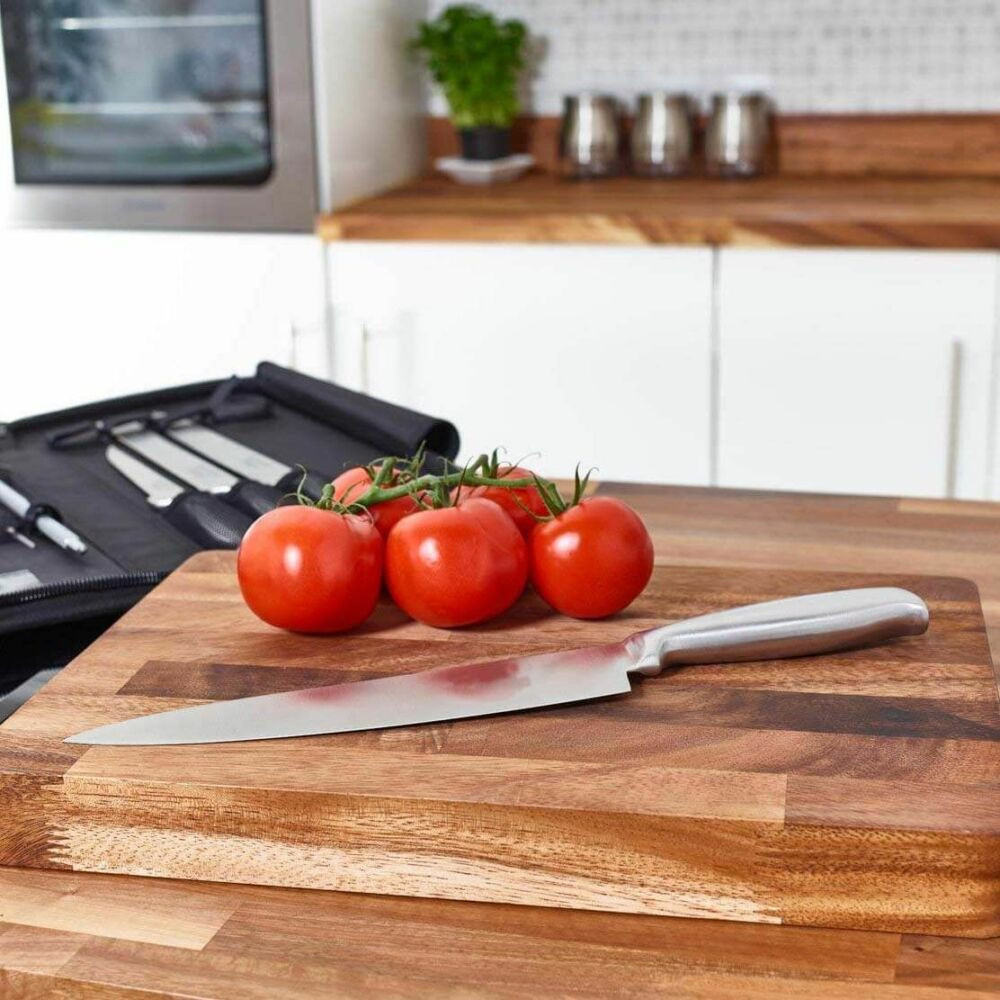 A készlethez ajándékba kapsz egy elegáns táskát, melyben biztonságosan tárolhatod a késeket, sőt akár magaddal is viheted őket például nyaralásra, egyéb utazásokra.