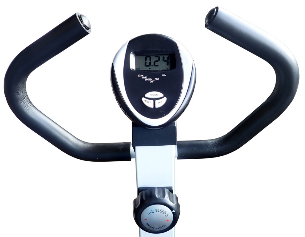 Mágneses szobabicikli, 110 kg teherbírás, 175 - 178 cm ajánlott magasság, 8 nehézségi fokozat, 4,5 kg lendkerék, függőlegesen állítható ülés, Scan funkció, méri az időt, távolságot, sebességet és az elégetett kalóriát. Fehér és fekete szín.