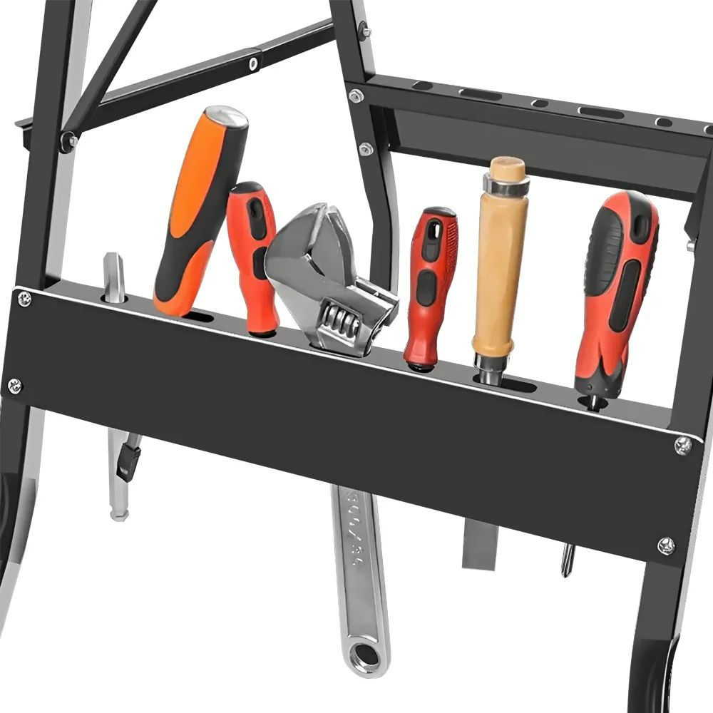 Az összecsukható szerkezetnek köszönhetően a munkaasztalt könnyedén elteheted a munka végeztével. Kompakt mérete ellenére stabil és 100 kg-ig terhelhető, így kisebb gépekkel vagy kéziszerszámokkal is biztonságosan használható.