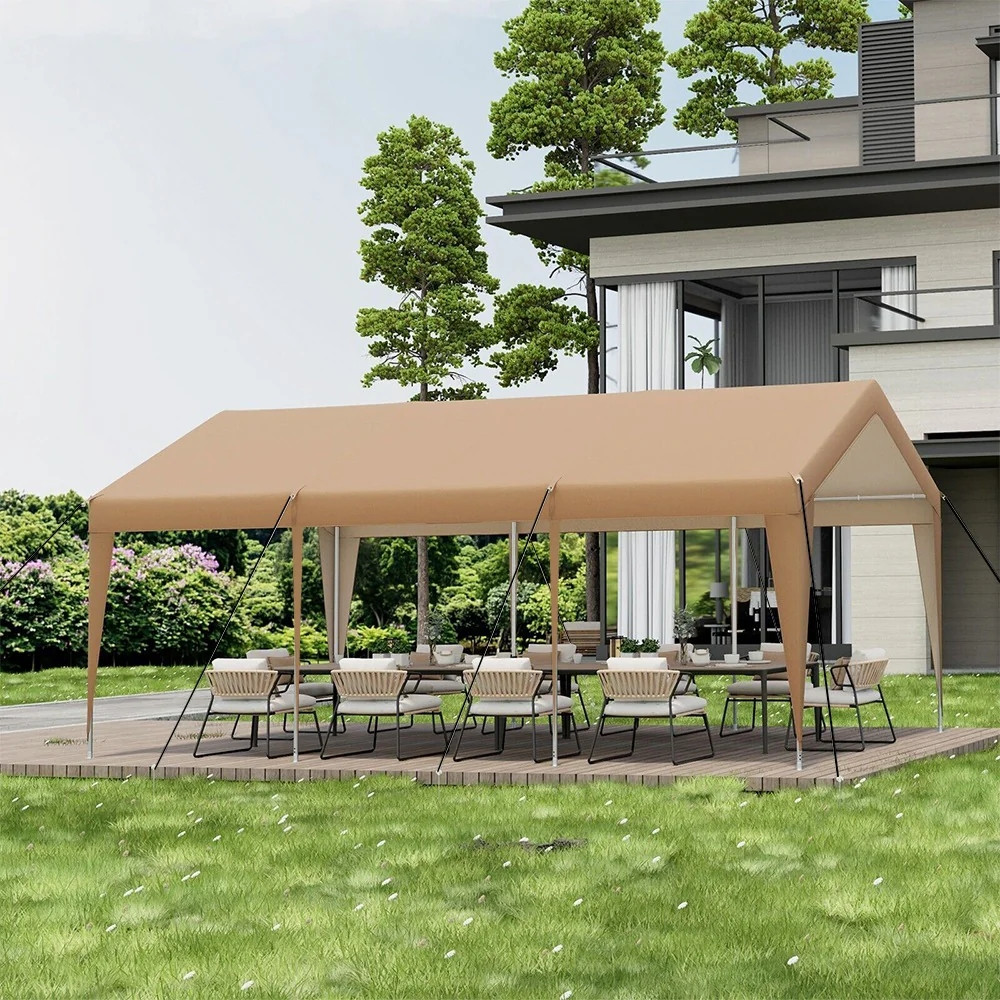 Ez a strapabíró autóbeálló sátor ideális megoldás autója, motorja vagy egyéb járművei védelmére. A 180g PE ponyva ellenáll az esőnek, a hónak és az UV-sugárzásnak, míg az acél váz stabilitást és tartósságot biztosít. A 6 x 3 x 2,8 méteres méretének köszönhetően tágas helyet kínál, így nagyobb autók vagy akár kisebb teherautók számára is alkalmas. A 4 ablak és az eltávolítható oldalfalak biztosítják a megfelelő szellőzést és rugalmasságot a használat során.