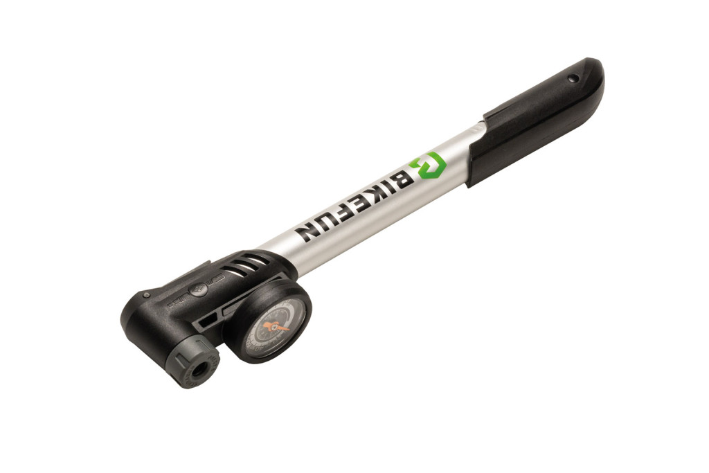 Alumínium minipumpa nyomásmérővel. Hossz: 10,5". Ergonomikus T markolat. Maximális nyomás 120 psi. Egyszerű "Clever Valve" illesztés AV/FV szelepekhez.