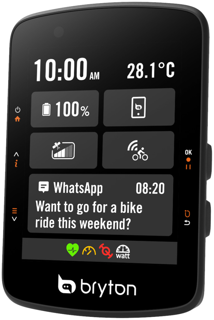 A Bryton Active alkalmazáson keresztül könnyedén kiválaszthatod az útvonalat, meghívhatod a barátaidat egy közös bringázásra, és előre beállított üzeneteket is küldhetsz közvetlenül a bringás komputerre.