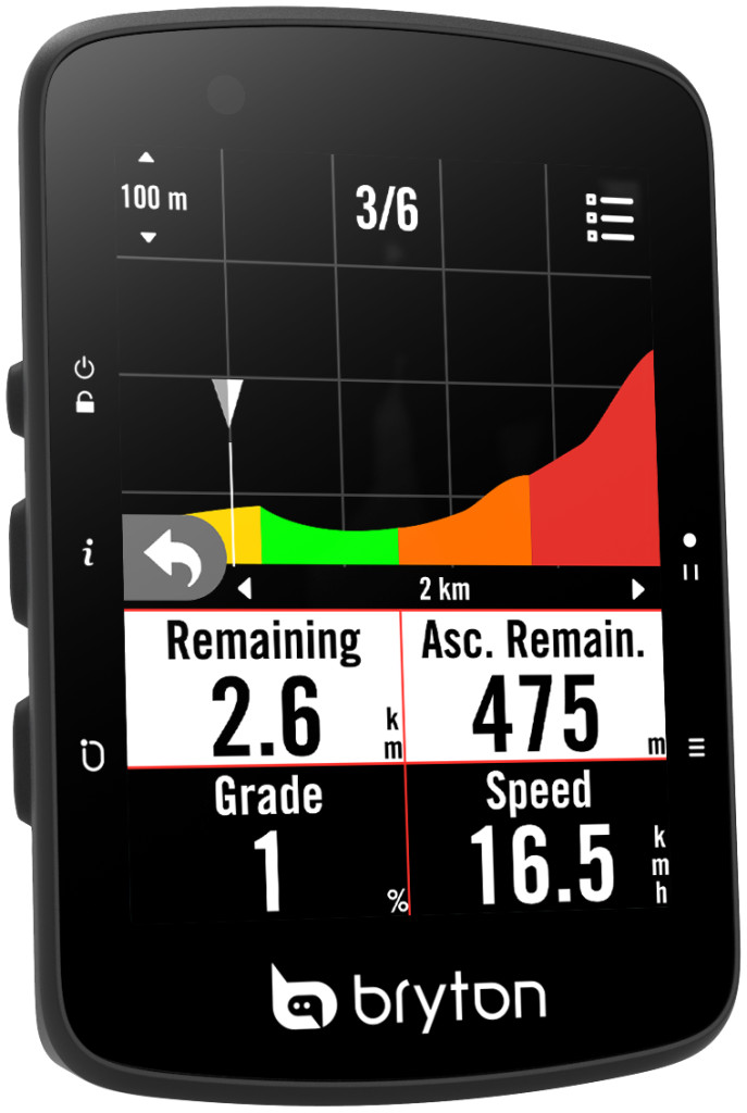 Amint közeledsz egy emelkedőhöz, a Climb Challenge funkció színes grafikus előnézetet mutat a szakaszról: láthatod a meredekséget, a hátralévő távot és a szintemelkedést. Ez segít, hogy jobban felkészülj az emelkedők leküzdésére edzés közben!