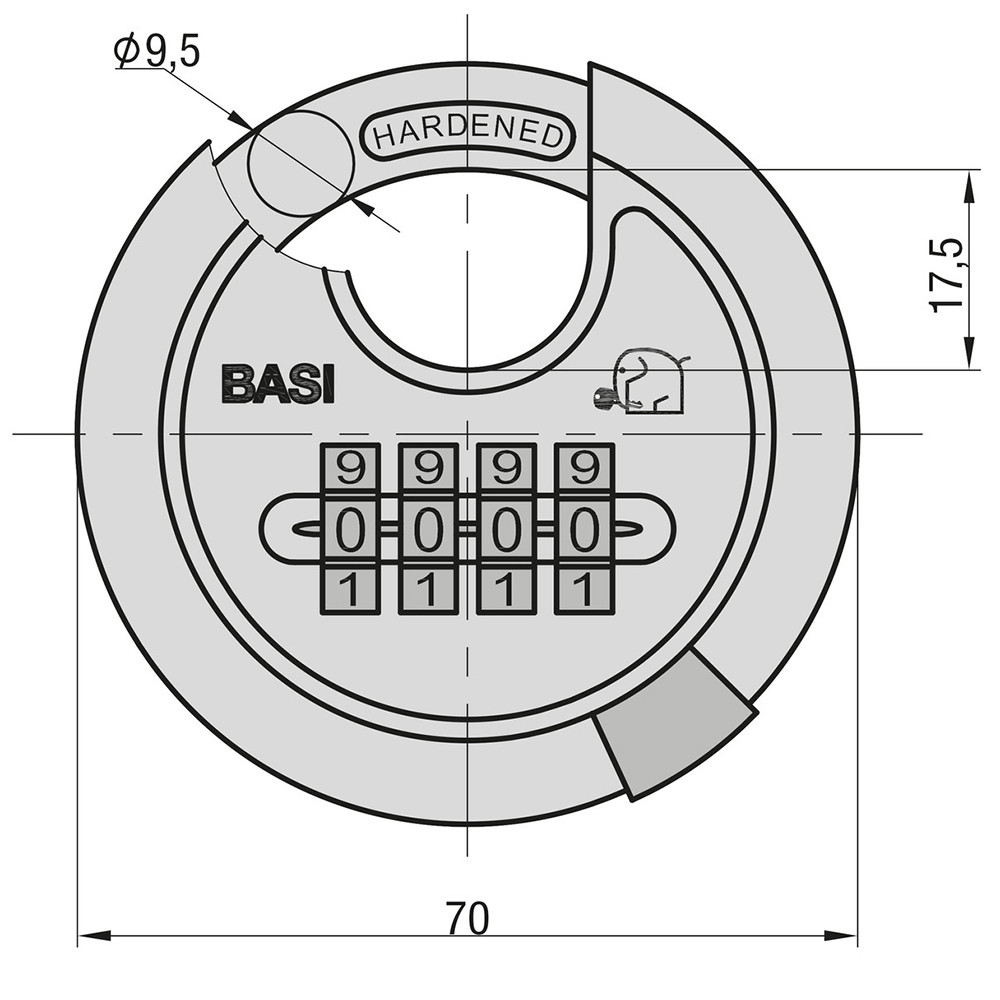 Basi RVS 610Z 70  számtárcsás diszkosz lakat B61007050