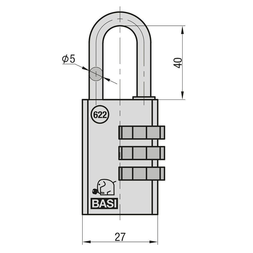 Basi VHS 622 25  számzáras réz lakat B62202500