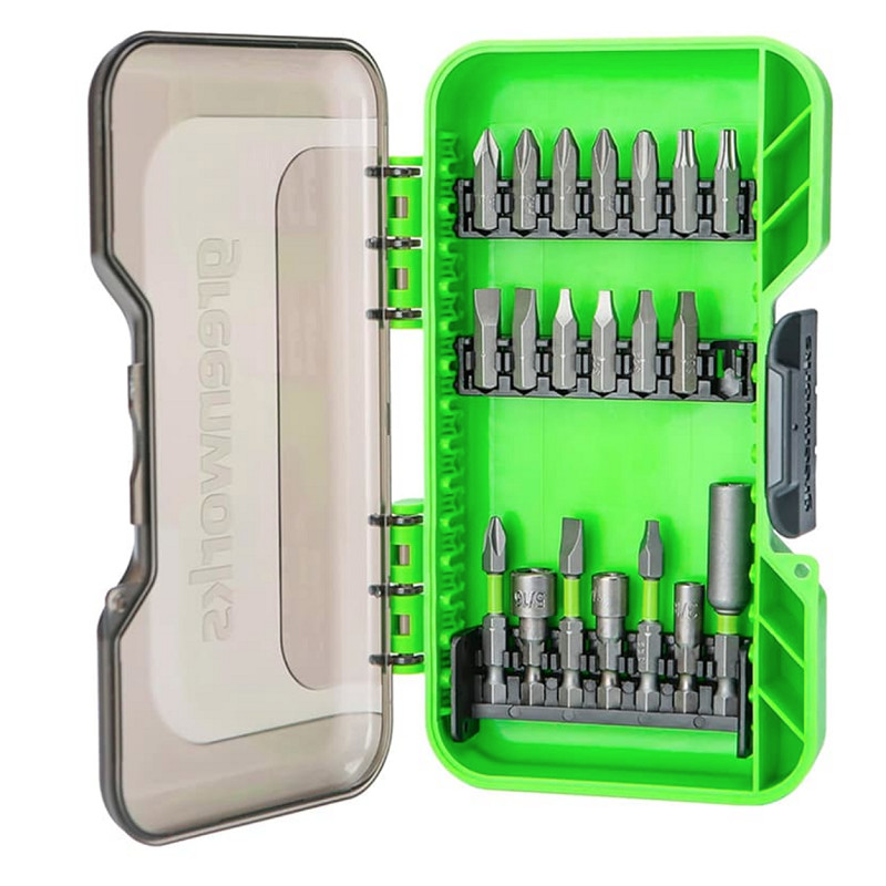 Ez a 20 darabos Pick&Click bitkészlet praktikus és kompakt megoldást kínál a mindennapi csavarozási feladatokhoz. A gondosan összeválogatott bitek lehetővé teszik a pontos és hatékony munkavégzést otthon, a műhelyben vagy akár a kertben is. A Pick&Click rendszernek köszönhetően a bitek egyszerűen cserélhetők és rendszerezhetők, így mindig kéznél van a megfelelő darab.A készlet kompatibilis minden hagyományos fúrógéppel és akkus csavarhúzóval, így univerzálisan használható. A tartós kialakítás hosszú élettartamot és megbízható teljesítményt biztosít rendszeres használat mellett is.A Greenworks termékkínálatában számos további, kertbe és műhelybe szánt eszközt talál. Fedezze fel a minőségi szerszámok széles választékát, és válassza a hatékony, megbízható megoldásokat minden projekthez.