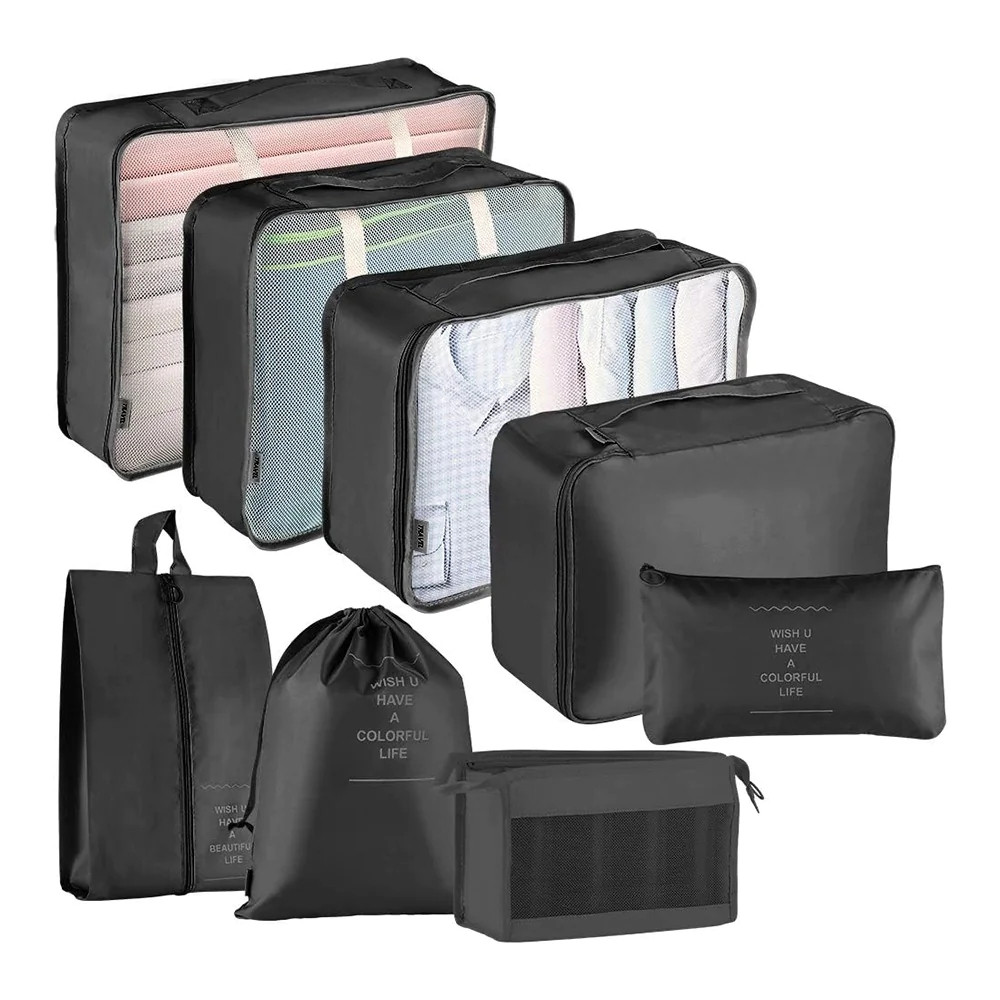 A csomag nyolc különböző méretű és típusú rendszerezőt tartalmaz, melyek bármilyen bőröndbe illeszkednek, így könnyen alkalmazkodnak az utazási igényeidhez.