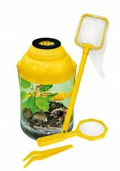 Discover and experience the world on land and in water. This four-piece set comes with a storage container with a carrying handle, a handheld magnifier, tweezers, and a net for catching insects! The container holds up to 3.5 liters of liquid and the lid's detachable magnifier has a diameter of 43mm and 2X magnification. With this Exploration Set, children can catch Insects or small fish and take a closer look at them.