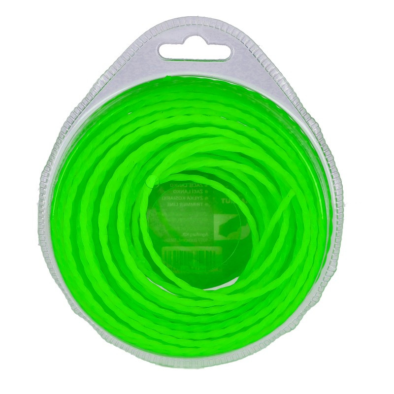 Bliszterbe csomagolt, 15 méteres 2.4 mm átmérőjű szögletes csavart profilú damil damilfejbe.