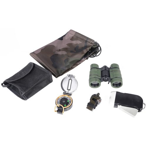 A Levenhuk Discovery Basics EK50 felfedezőkészlet olyan eszközöket tartalmaz, amelyek hasznosak kempingtúrák során. Vidéki felfedező utak kötelező eleme, hiszen segítségével gyorsan tájékozódhat a fák között, felfedezheti a környező területeket és vészhelyzet esetén segítségkérő jelzést adhat le. Az eszközök mindegyike kényelmes hátizsákban tartható.