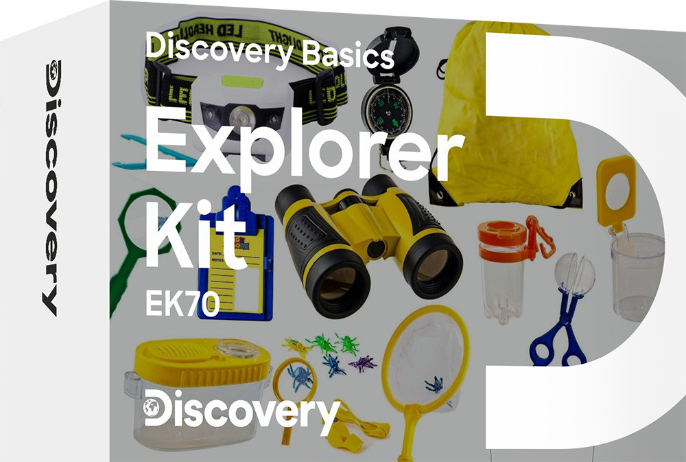 A Levenhuk Discovery Basics EK70 felfedezőkészlet kifejezetten az elkötelezett felfedezők számára készült, akik az őket körülvevő világról a lehető legtöbbet szeretnék megtudni, és ehhez különféle eszközökre van szükségük. Optikai, tájékozódáshoz való és biológiai kutatásokhoz használható eszközöket tartalmaz, valamint jegyzetfüzetet a legszokatlanabb felfedezések feljegyzéséhez. Az egyszerűbb utazás érdekében a készlethez tartozik egy hátizsák, amelyben az eszközök könnyedén elférnek.