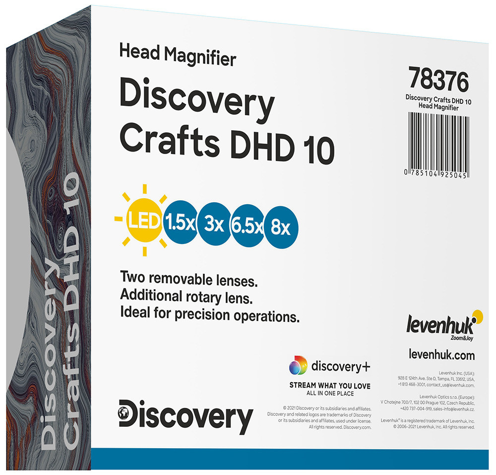 A Levenhuk Discovery Crafts DHD 10 fejre rögzíthető nagyító optikai nagyító ékszer- és órakészítéshez. Kényelmes, méretre állítható fejpánttal rögzül a fejre, négy különböző nagyítást biztosít, gyenge fényviszonyok esetére világítással rendelkezik. Nagyszerű választás professzionális munkához vagy apró tárgyak kezelését igénylő hobbihoz.