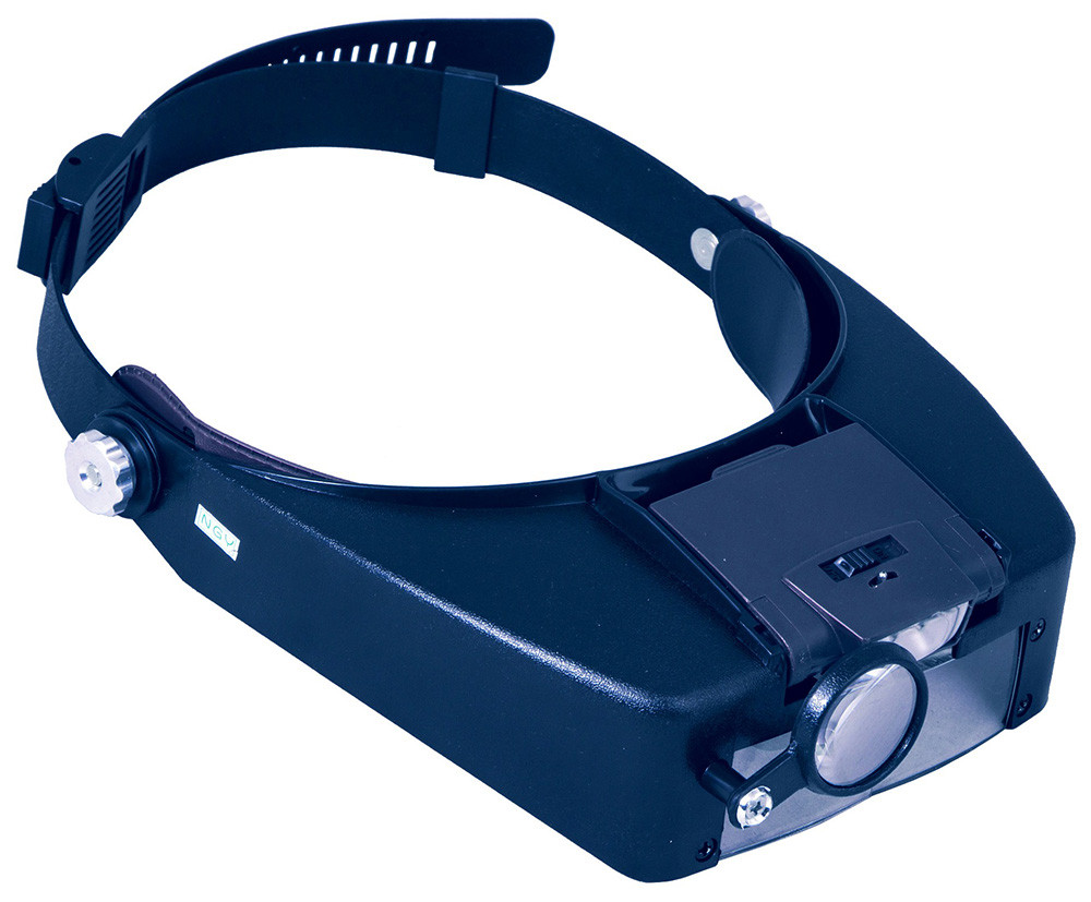 A nagyító méretre állítható fejpánttal rögzíthető a fejen. A világítás működtetéséhez elemekre van szükség.