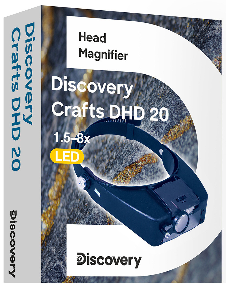 A Levenhuk Discovery Crafts DHD 20 egy fejnagyító, amely precíziós munkákhoz hasznos. Jól jön még a felületi hibák felméréséhez és az apró betűs részek vagy rajzok olvasásához is. A nagyító kéz nélküli, erős nagyítást biztosít és beépített világítással rendelkezik. Funkciói hasznosak lesznek az ékszerész, az órásmester, a modellkészítő, a szervizközpont technikusa és még sok más szakember számára.