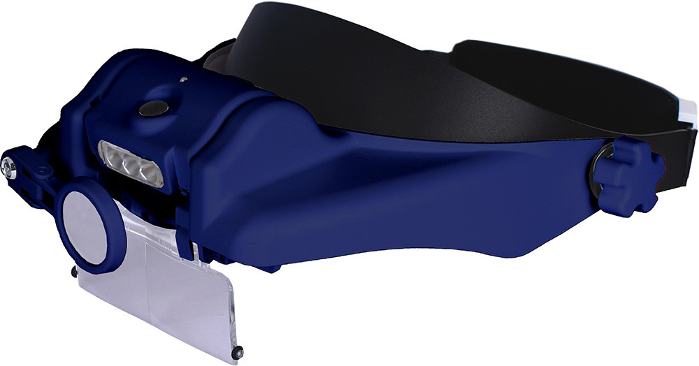 A nagyító méretre állítható fejpánttal rögzíthető a fejen. Újratölthető elemmel működő LED-világítás áll rendelkezésre, amely micro-USB – USB kábellel tölthető fel. A LED fényereje állítható.