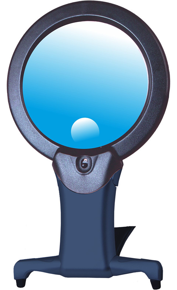 A nagyító elhelyezhető az asztalon egy állványon, vagy nyakba akasztható egy pánttal. Gyenge fényviszonyokhoz beépített LED-világítása van. A LED-ek elemről működnek.