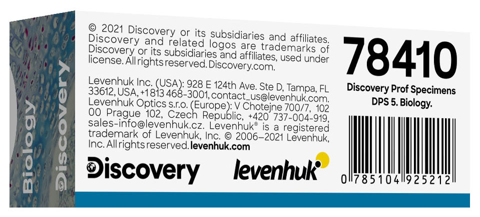 A Levenhuk Discovery Prof DPS 5 mikropreparátum mintakészlet. A „Biológia” megnevezésű összeállítása öt darab professzionális besorolású tárgylemezt tartalmaz növényi szövetekkel, algákkal és gombák szöveteivel. Tökéletesen használhatók bármely alsó megvilágítású optikai mikroszkóppal. Az előkészített tárgylemezekkel némi időt takaríthat meg magának – csupán annyit kell tennie, hogy a kiválasztott mintát a mikroszkóp tárgyasztalára helyezi és el is kezdheti a megfigyelést.