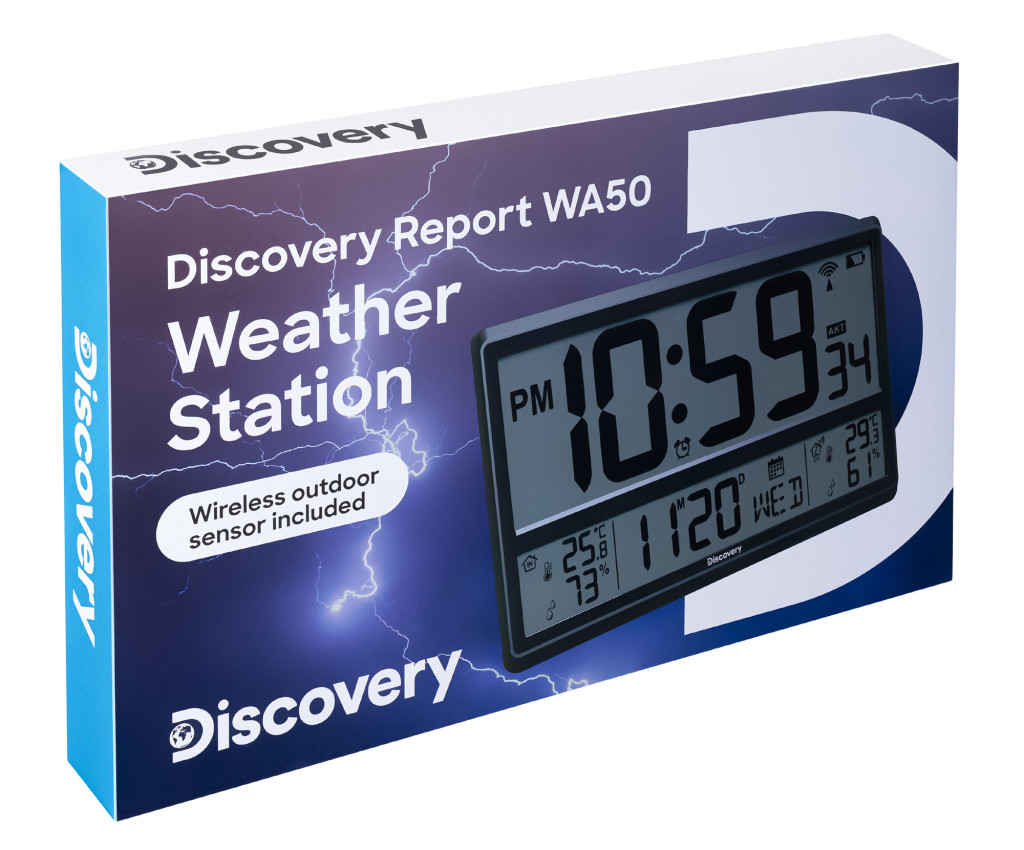 A Levenhuk Discovery Report WA50 stílusos és szemet gyönyörködtető készülék csodálatos ajándék lehet. Keskeny vázformájának köszönhetően kialakítása kimondottan könnyed és elegáns, funkcionalitásában pedig ugyanolyan kiváló, mint analóg társai. Az időjárás-állomás hőmérsékletet és páratartalmat mér, megjeleníti az időt, a dátumot és a hét napját. Ébresztőórával is rendelkezik. A készlet tartalmazza a távoli termohidrométert (érzékelőt).