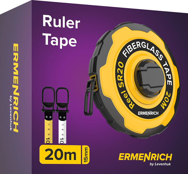 Az Ermenrich Reel SR20 mérőszalag egy 20 méteres üvegszálas mérőszalag nagy szilárdságú ABS műanyagból készült, zárt, lemezszerű tokban. A szalag mérések elvégzésére használható javítási, dekorációs vagy építési munkálatok során, hosszúkás anyagok vágásakor, telek kijelölésekor és sok egyéb helyzetben. A robusztus, tartós, könnyen kezelhető és felhasználóbarát Ermenrich Reel SR20 mérőszalag professzionális és otthoni használatra egyaránt alkalmas.