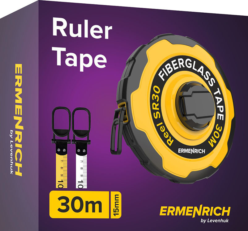 Az Ermenrich Reel SR30 mérőszalag akár 30 méterig mér. A mérőszalag masszív lemezszerű tokban található, nagyméretű véghoroggal felszerelve. A mérőszalag használható építési és bútoripari munkákhoz, helyiségek díszítéséhez, területrendezéshez stb. Tökéletes választás professzionális és otthoni használatra egyaránt.