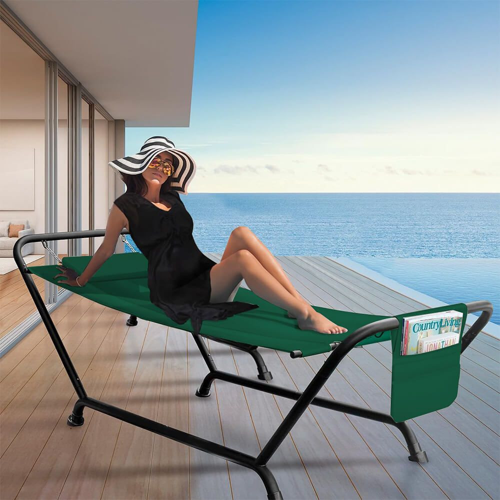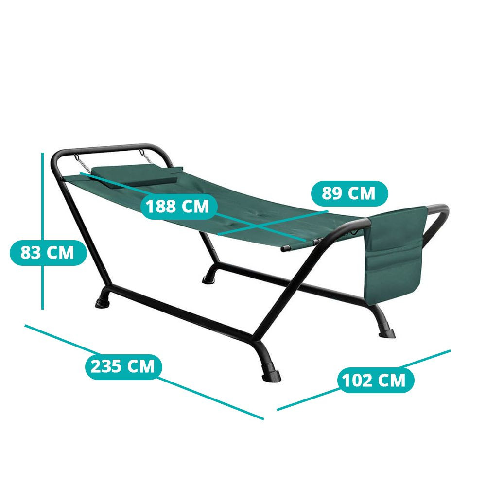 Függőágy 2-lábas tartóállvánnyal sötétzöld HOP1001731