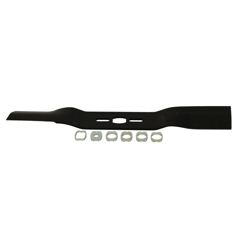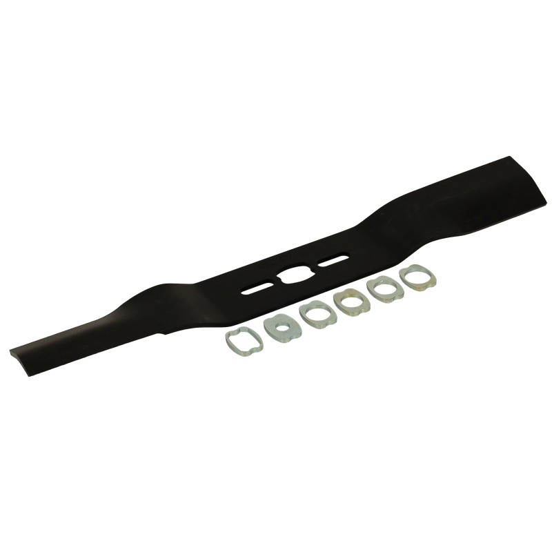 Fűnyíró kés 450 mm, univerzális hajlított, betétgyűrűvel utángyártott MOG987/R