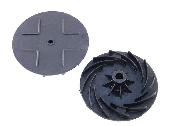 Imi Rotim1600 típusú elektromos fűnyíróhoz lapolt tengelyű, ívelt bordás, műanyag fűnyírókéstartó.