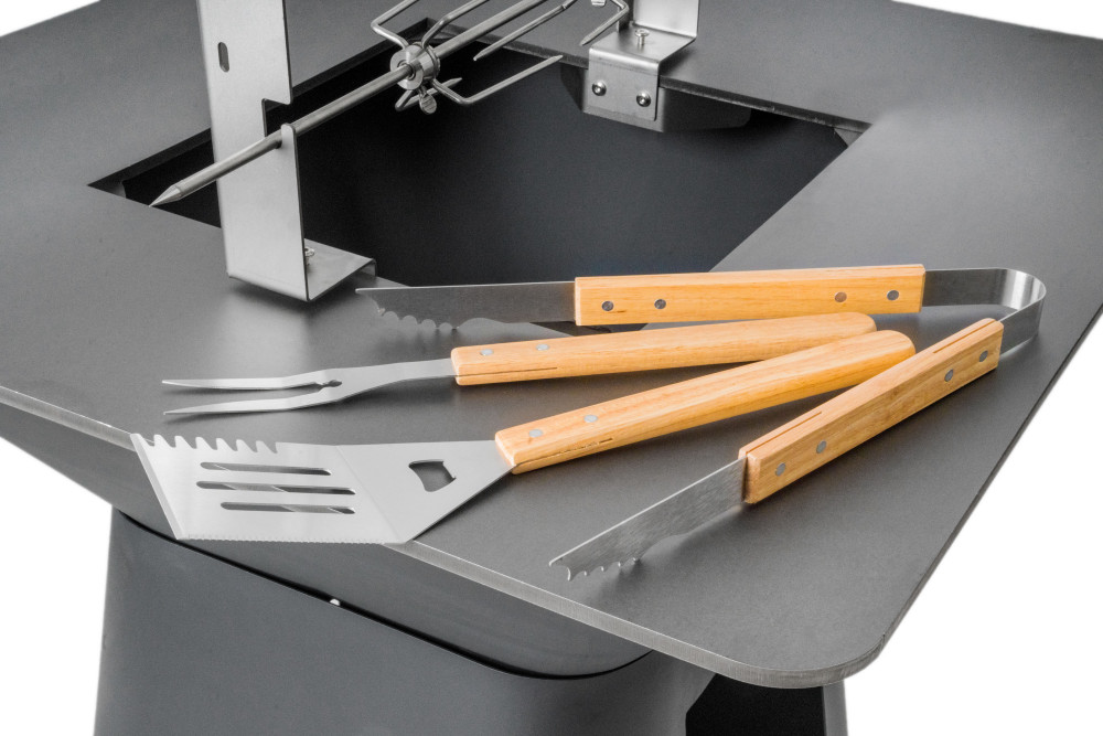 komplett készlet forgatóval, grillvillával és grillfogóval