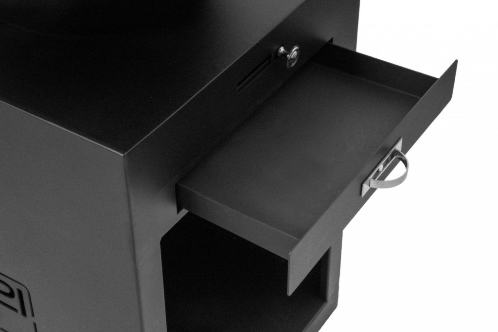 A grill felső része egy kihúzható hamutartóval ellátott kandallóból áll, és a grill domináns jellemzője a hatalmas grillezési felület - plancha vastagsággal. 1 cm-es, enyhén a közepe felé döntve.