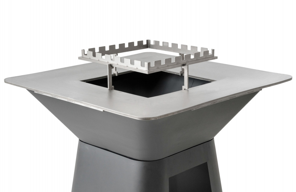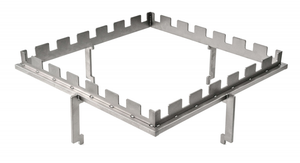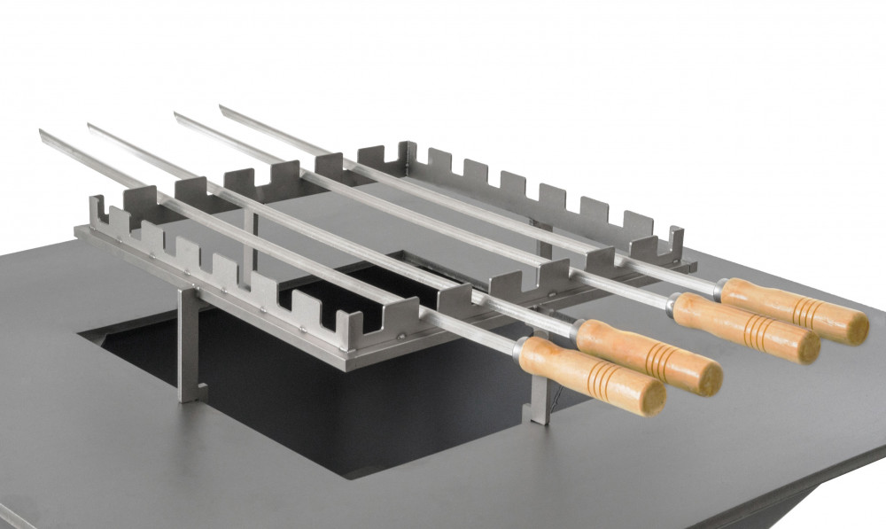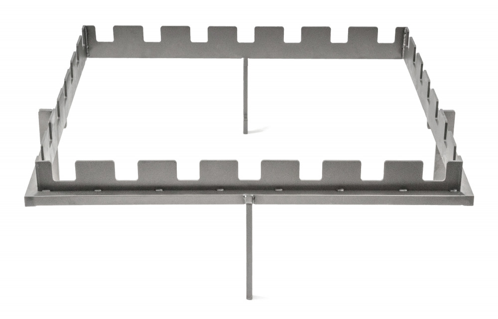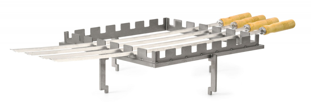 Tartozék fatüzelésű grillsütőkhöz - rozsdamentes acél állvány 5 nyárshoz, mérete 40 x 40 cm, tűzhely feletti magassága 14,5 cm.