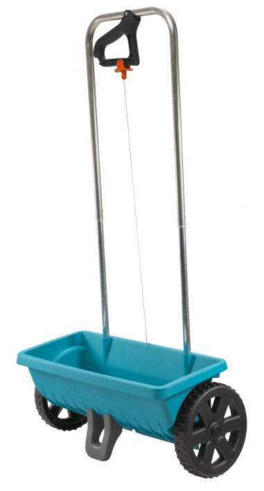 A GARDENA szórókocsi L kiválóan alkalmas műtrágya és útszóró só kényelmes kiszórására közepes nagyságú területeken. Könnyedén működtethető a markolaton található nyit/zár funkció, és ugyanitt állítható be a kiszórandó mennyiség is. A szórókocsi fedelén található zárószalag olyan szorosan zár, hogy sem álló helyzetben, sem töltés közben sem használat után nem szóródik ki belőle semmi. A GARDENA Szórókocsi L különleges szóróhengere az anyagot egyenletesen és pontosan szórja ki, ráadásul csak ott, ahol kell. A szórókocsi könnyedén, vízzel tisztítható.
