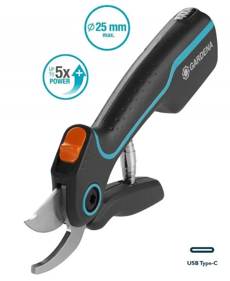 A GARDENA AssistCut metszőolló ideális segédeszköz az ágak, fiatal hajtások és virágok egyszerű és könnyed vágásához, 25 mm-es maximális vágási átmérővel. Az akkumulátorral támogatott metszőolló intelligens érzékelővel rendelkezik, amely a vastagabb ágak vágásakor akár ötszörös extra teljesítményt biztosít (a szokásos metszőollóhoz képest), amint ellenállást észlel. A metszőolló csökkenti a kéz megerőltetését, így még könnyebben végezheted el a kerti munkákat. Ha az akkumulátor teljesen fel van töltve, az AssistCut lehetővé teszi az akár 1400 akkumulátorral támogatott vágást. Az ergonomikus markolatnak köszönhetően az olló tökéletesen illik a kézbe, és a két különböző nyílásszögű markolatnak köszönhetően a kerti olló ideális vágóeszköz különböző kézméretekhez. A Németországban gyártott, precíziós élezésű rozsdamentes acélkések és a mellévágási elv lehetővé teszi, hogy kíméletesen és pontosan vágj a növények védelme érdekében. Ha az akkumulátoros üzemmód ki van kapcsolva, a GARDENA AssistCut manuális metszőollóként használható. A be- és kikapcsolási funkció biztosítja az akkumulátor hosszú élettartamát is, mivel idővel nem merül le. Az akkumulátor könnyen és gyorsan feltölthető 100%-ra 100 perc alatt a mellékelt USB-C kábellel (a hálózati adapter nem tartozék). A GARDENA három év gyártói szavatosságot vállal a Németországban gyártott AssistCut metszőollókra. A pontosság ereje. AssistCut. Erős segítség a soron következő munkához. Új akkumulátoros energiaellátási lehetőség, több energia, amikor szükséged van rá.