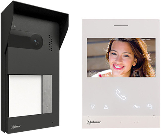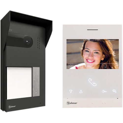 Színes szett, 2 vezetékes, bővíthető, falon kívüli kültéri, 4.3" kapacitív beltéri,intercom.