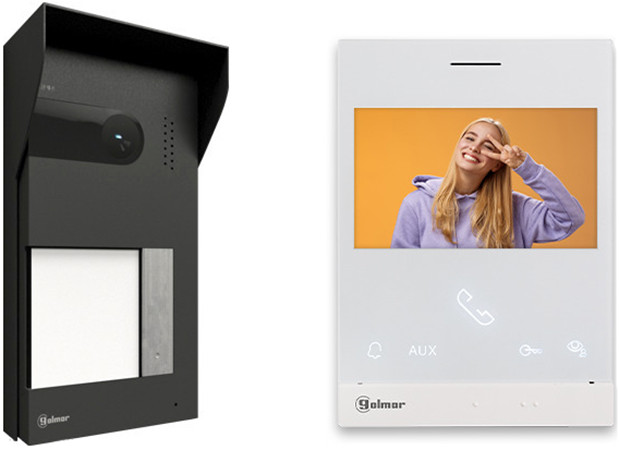 Színes szett,2 vezetékes,bővíthető, falon kívüli kültéri,intercom, 4.3" beltéri,tápegység.