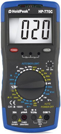 Univerzális, digitális mérőműszer. A méréshatárok manuálisan állíthatók be. A nagy LCD kijelzőről könnyen leolvashatók a mért adatok. Egyenfeszültség, egyenáram, váltófeszültség, váltóáram, ellenállás, kapacitás, frekvencia, induktivitás és hőmérséklet mérésére is alkalmas. További szolgáltatása a tranzisztor és dióda tesztelő funkció, a szakadásvizsgálat és az érintés nélküli váltófeszültség keresés. Az adott elektronikai jellemző mérési tartományában a nem használható mérővezeték csatlakozási pontjai lezáródnak, így elkerülhető a téves csatlakoztatás.