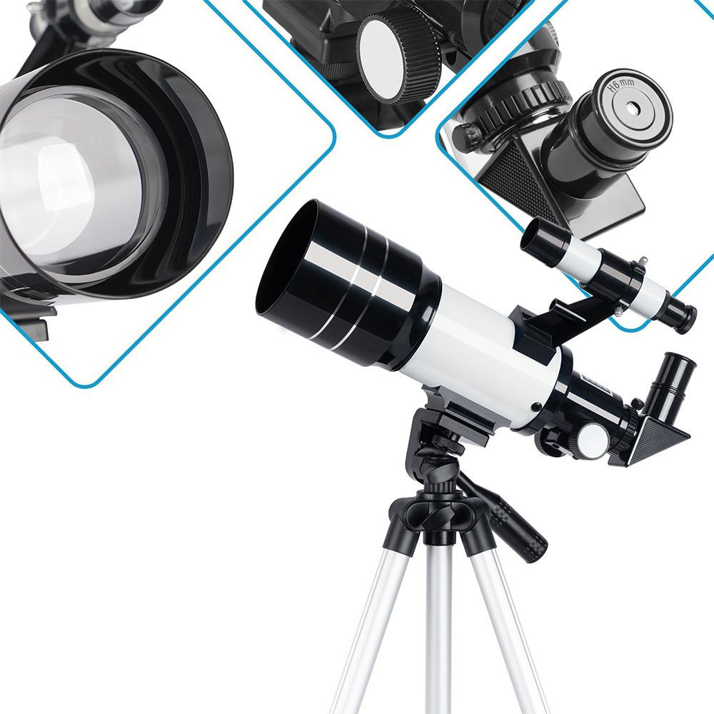 A csillagászati teleszkóp lehetővé teszi, hogy közelebbről megvizsgáld az égitesteket, és a modern technológia segítségével a mobiltelefonoddal meg is örökítheted az éjszakai égbolt csodáit. Nagy felbontású optikával rendelkezik, így részleteiben tanulmányozhatod a holdat. Stabil, könnyen hordozható állvánnyal rendelkezik, így bárhová magaddal viheted ami ideális kirándulások alkalmával. Kezdő és tapasztald csillagászok számára is izgalmas élményt nyújt.