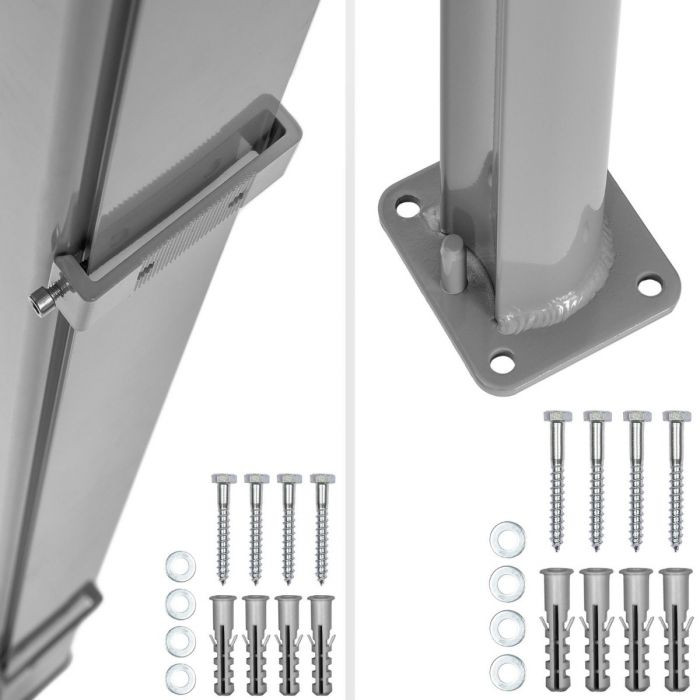 A fém vázat egyszerűen egy erős falfelületre kell csavarozni, majd a rögzítőoszlopot a megfelelő távolságban elhelyezni és szinté erősen lecsavarozni.