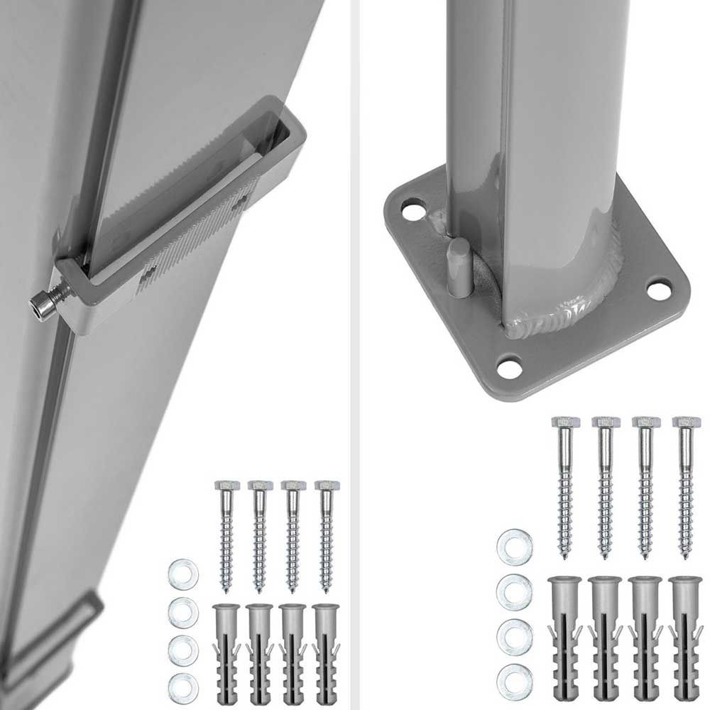 A fém vázat egyszerűen egy erős falfelületre kell csavarozni, majd a rögzítőoszlopot a megfelelő távolságban elhelyezni és szinté erősen lecsavarozni.