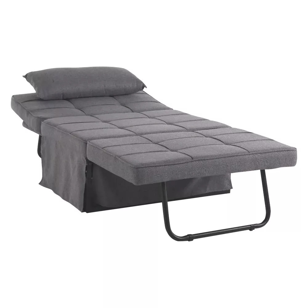 A kihúzható fotelágy modern, szürke designnal és 6 fokozatban állítható háttámlával biztosít kényelmes pihenést. Könnyedén átalakítható fotelből ággyá, így ideális választás kis helyiségekbe vagy vendégszobába. Lenvászon huzata, fémváza és 10 cm vastag szivacsa hosszú távon is komfortos használatot nyújt.